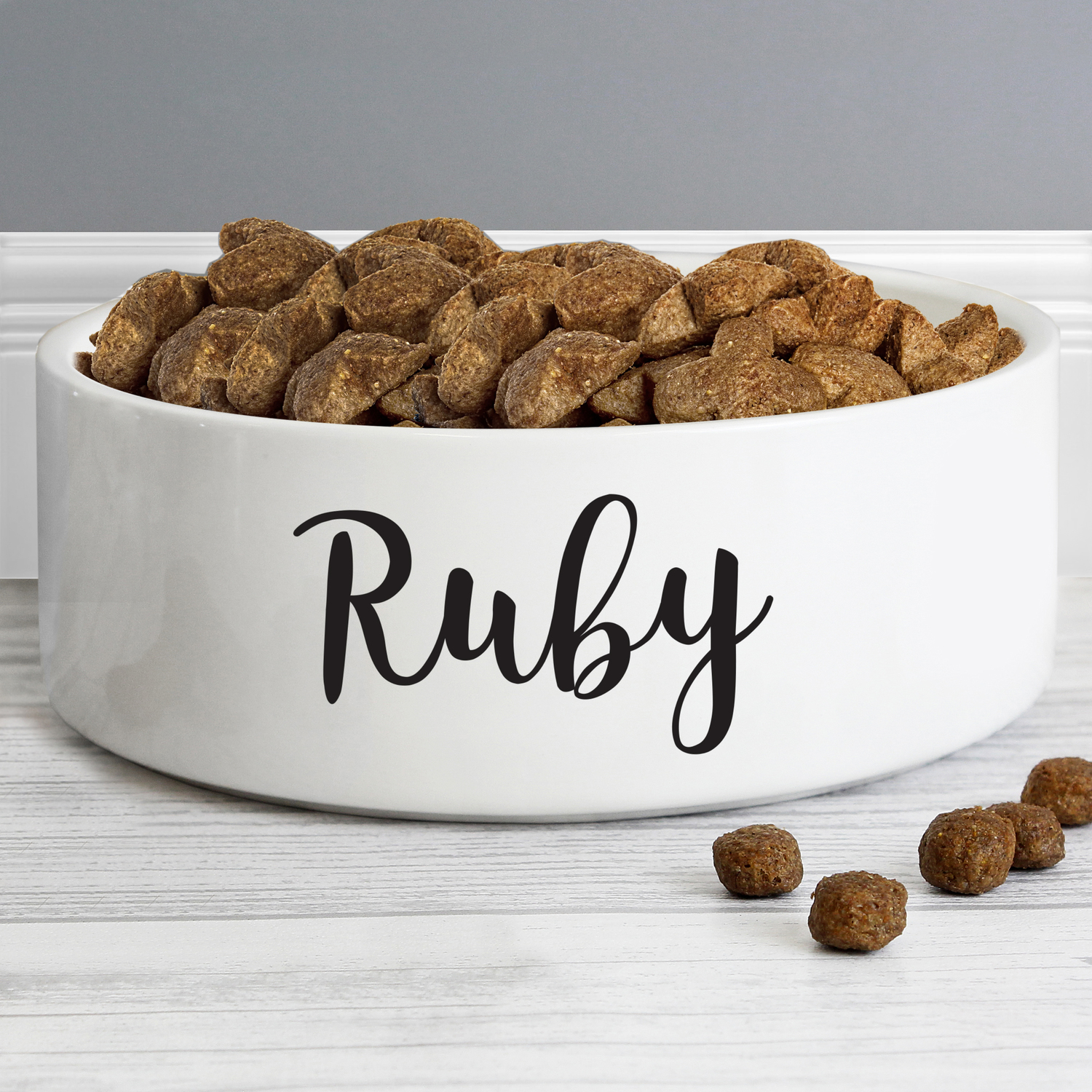 Our Personalised Any Name 14cm Medium White Pet Bowl can be personalised with a name up to 12 characters.
