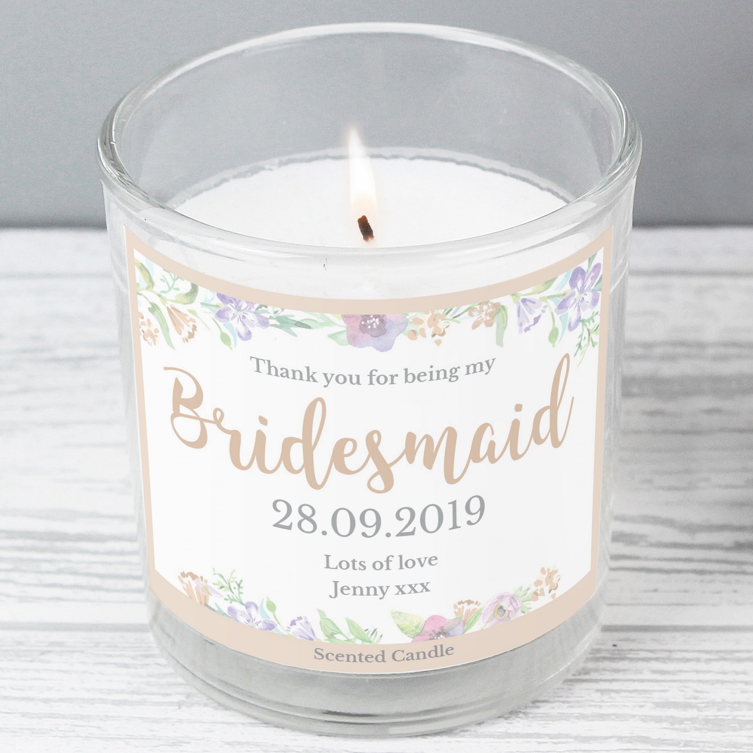This Personalised Floral Bridesmaid Scented Jar Candle is a lovely thank you gift.