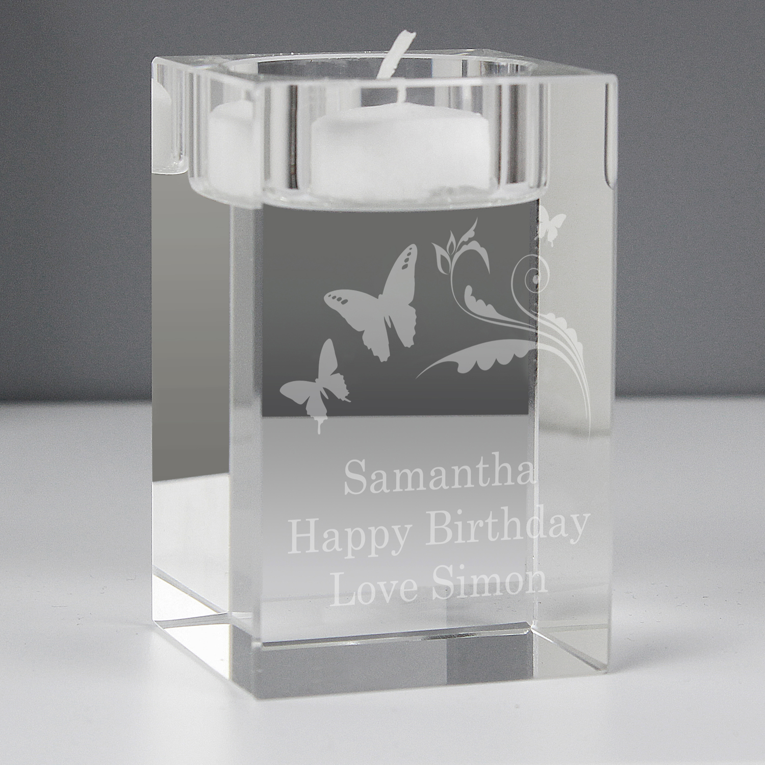 Personalised Butterfly Swirl Glass Tea Light Candle Holder