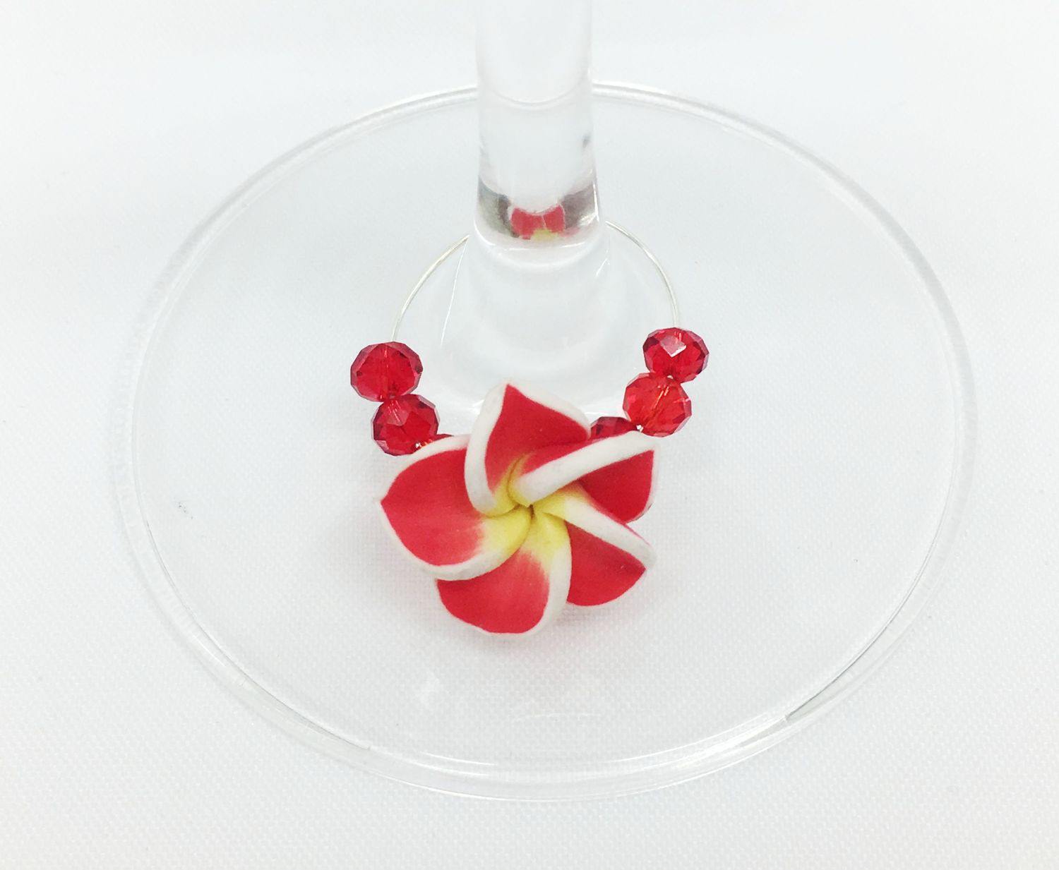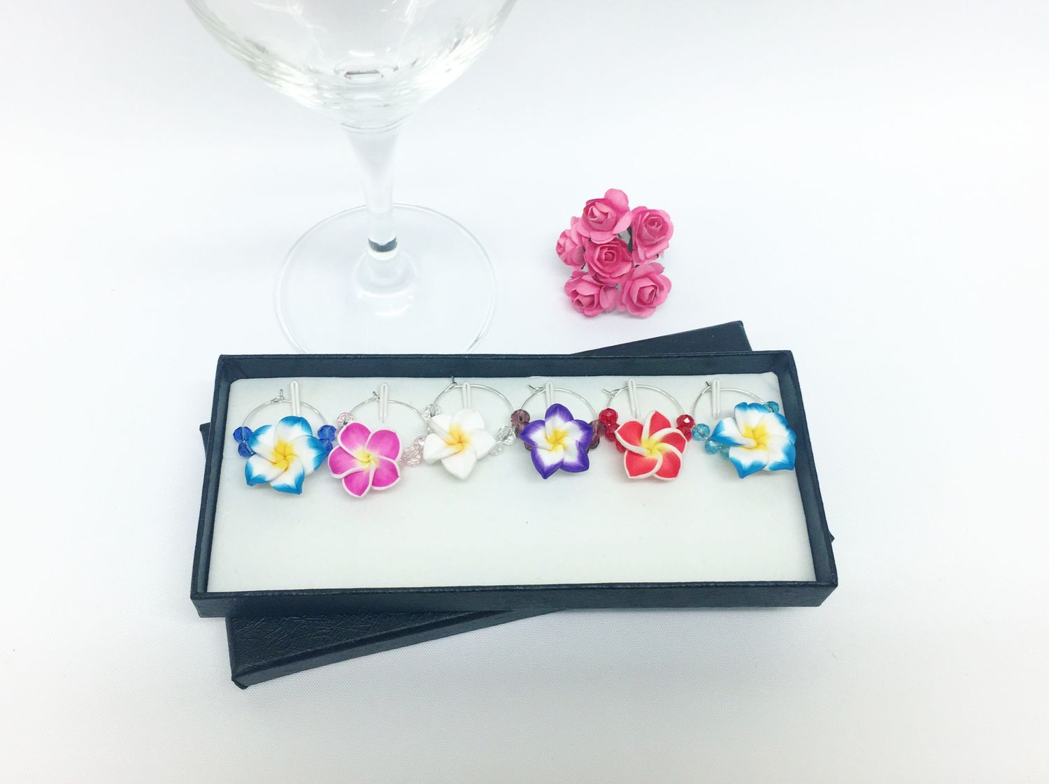 Set of six handmade wine glass charms with colourful beads and a beautiful flower charm.