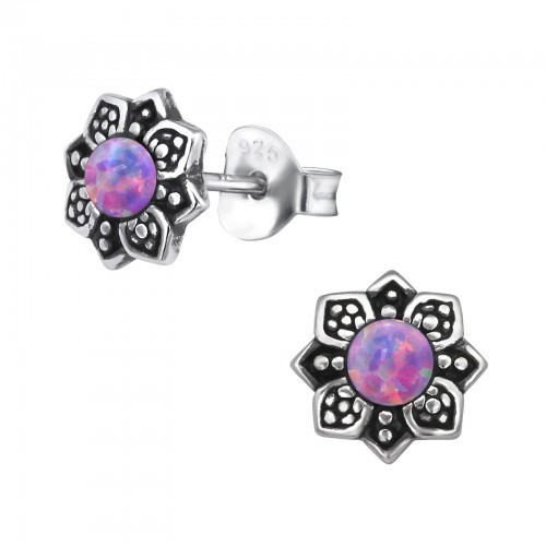 Rainbow Opal Silver Flower Studs