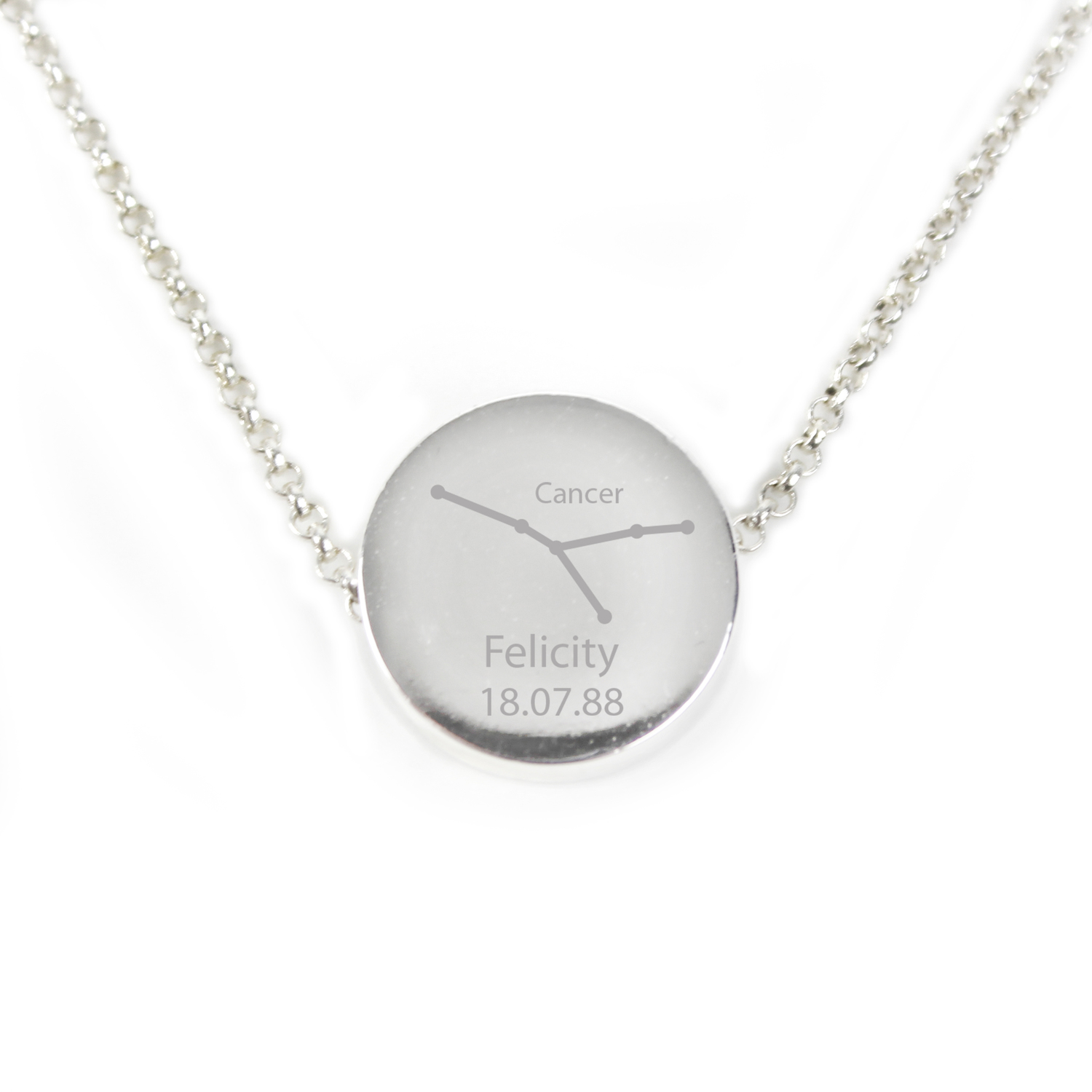 Personalised Cancer Zodiac Star Sign Silver Tone Necklace (21st June - 22nd July)