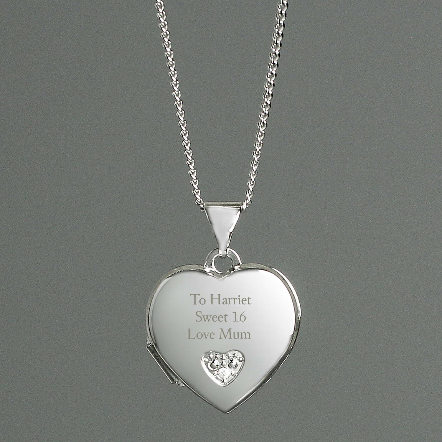 Personalised Children's Sterling Silver & Cubic Zirconia Heart Locket Necklace